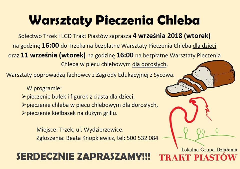 Zorganizowaliśmy cykl warsztatów z pieczenia chleba i bułek dla dzieci, młodzieży i dorosłych. Dziękujemy LGD Trakt Piastów, która współdziała z Trzkiem w projekcie Aktywne Sołectwa 2018. Podziękowanie Pani Moli i Rysiowi z Sycyny za prowadzenie, przybyłym za aktywność. Oto jak było …