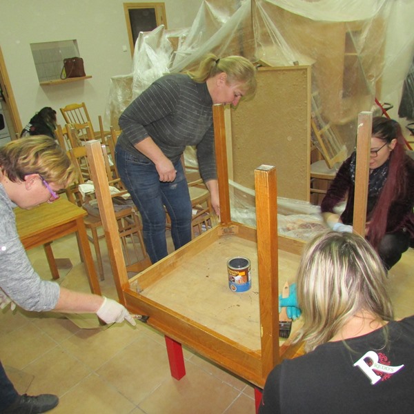 Warsztaty odnawiania mebli dużych i małych – krzesła, stoły, szafki i inne przedmioty były ręcznie szlifowane, szpachlowane i malowane. Członkinie Koła Gospodyń Wiejskich z Trzeka poznały dużo ciekawostek jak przygotować mebelek, jakie są rodzaje farb, lakierów. Dodatkowo zostały odnowione stoły, które są na wyposażeniu świetlicy wiejskiej.