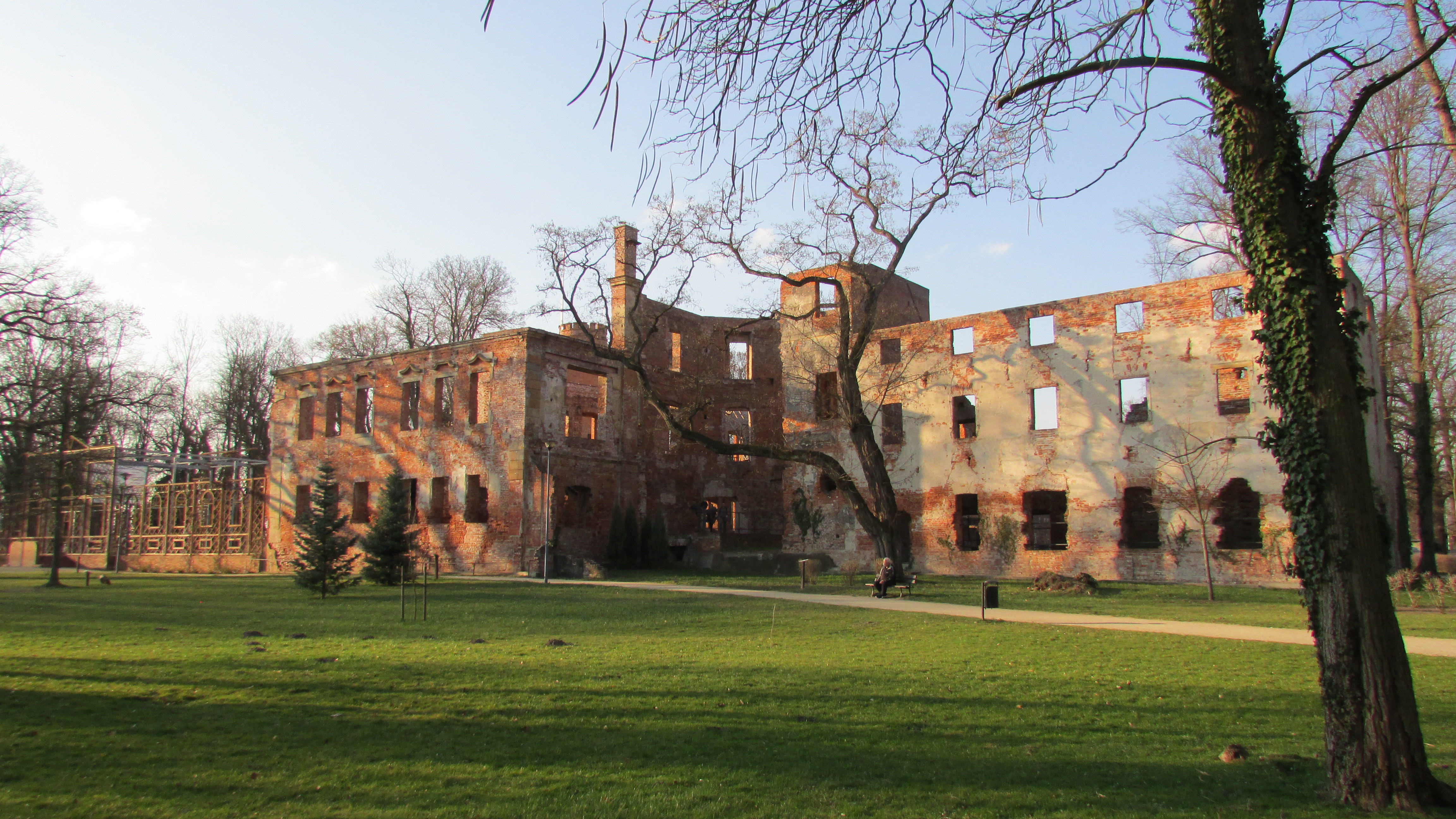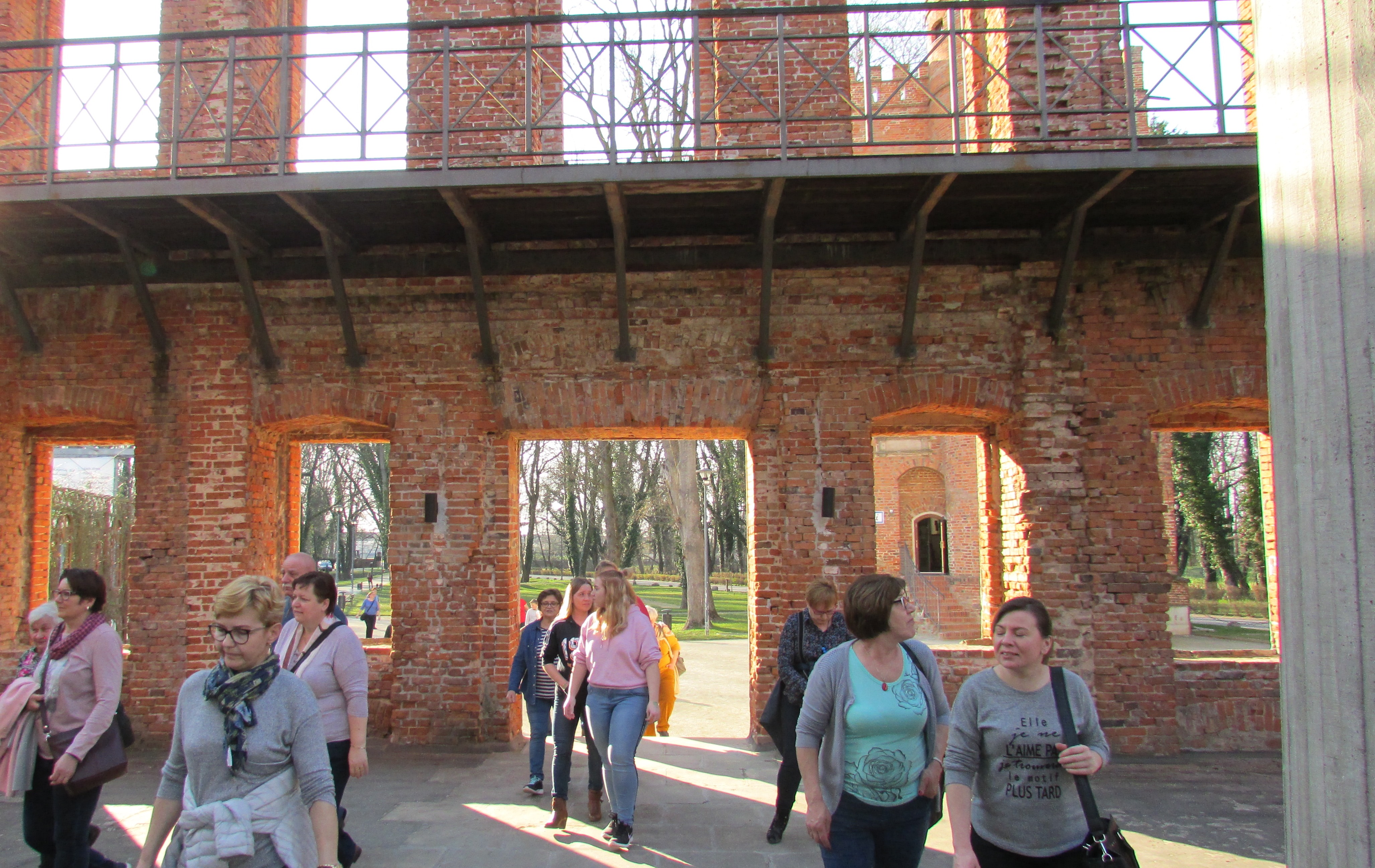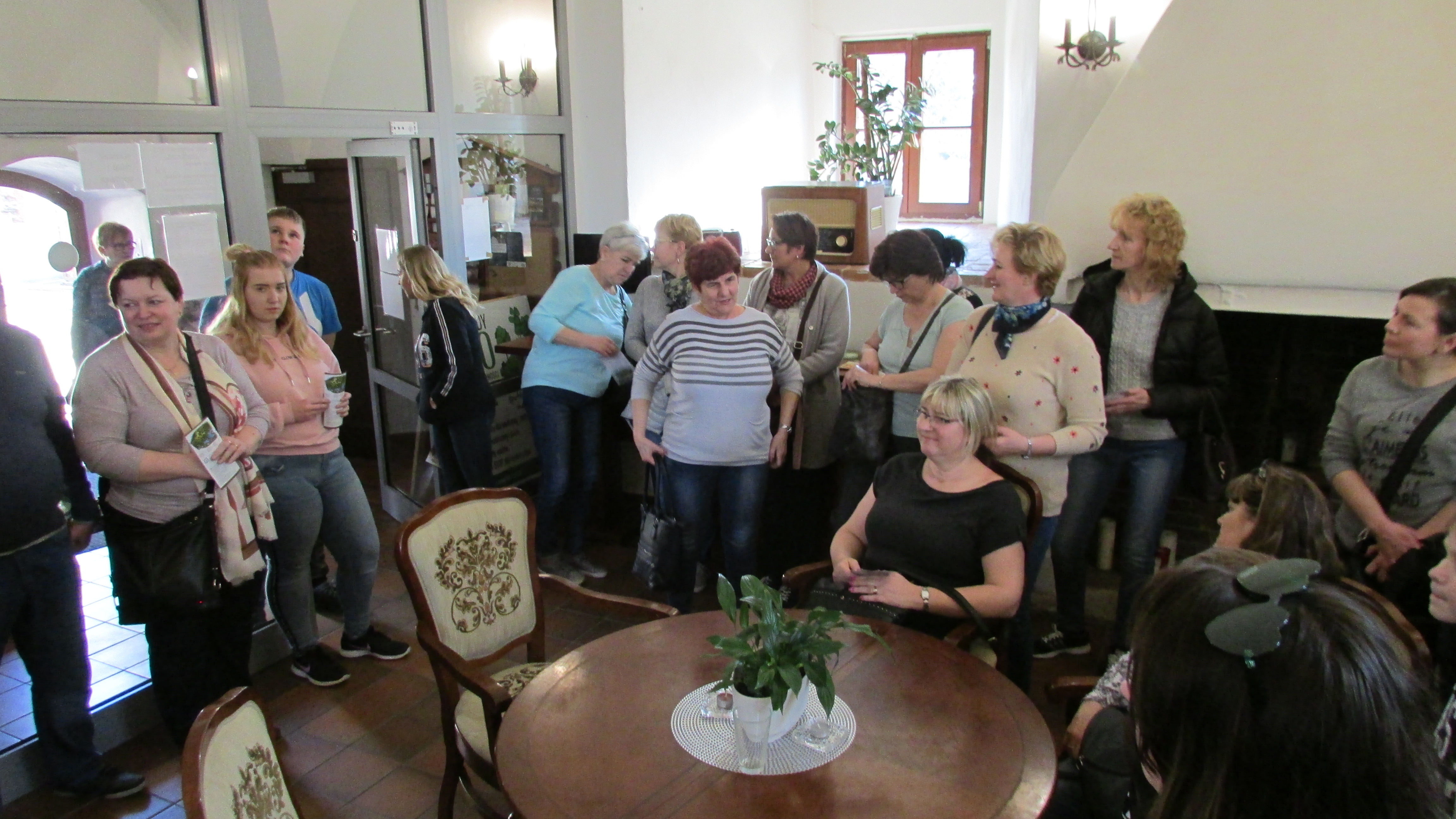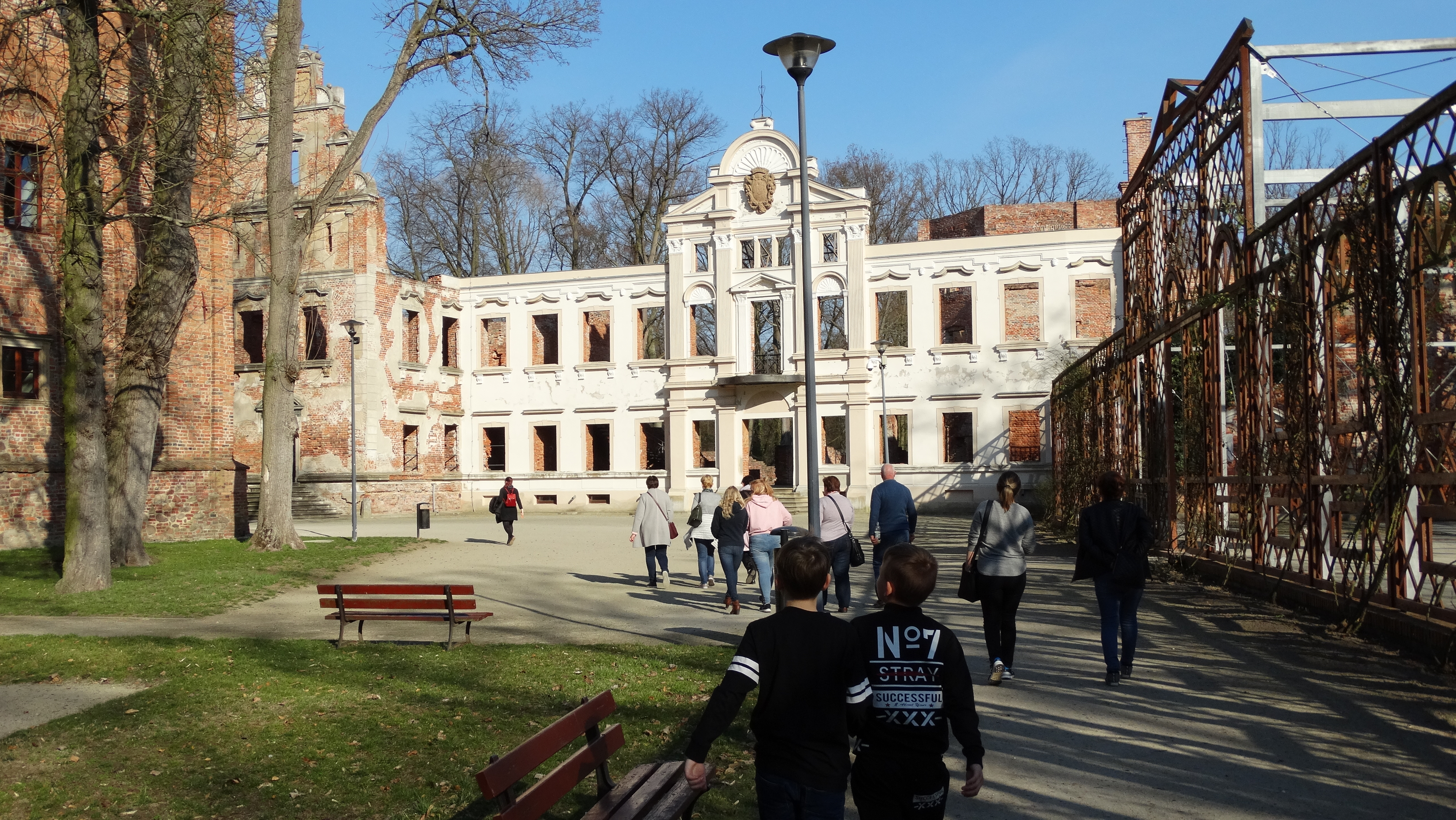 Kolejny przystanek był w Żmigrodzie, gdzie zwiedzaliśmy Zespół Pałacowo-Parkowy zaczynając od obronnej wieży mieszkalnej, zwanej basztą. Ruiny zamku otoczone są romantycznym parkiem, który powstał na przełomie XVIII i XIX wieku na powierzchni mniej więcej 15 hektarów. Piękna wiosenna pogoda sprzyjała by podziwiać małą architekturę (wyspę z dwoma mostkami i placem wypoczynkowym z miejscem na ognisko, grillem, pergolą i tzw. domkiem chińskim). Każdy znalazł inspirację do swoich ogrodów.