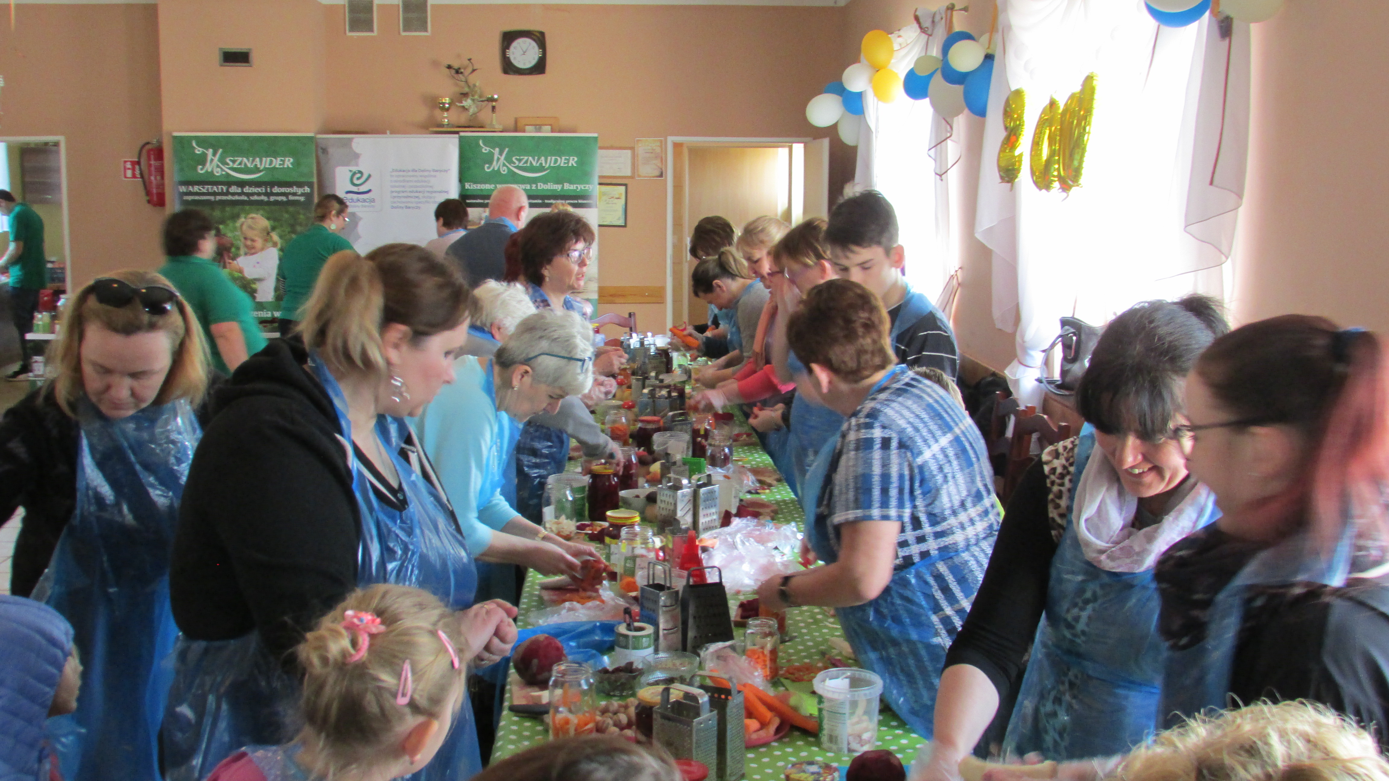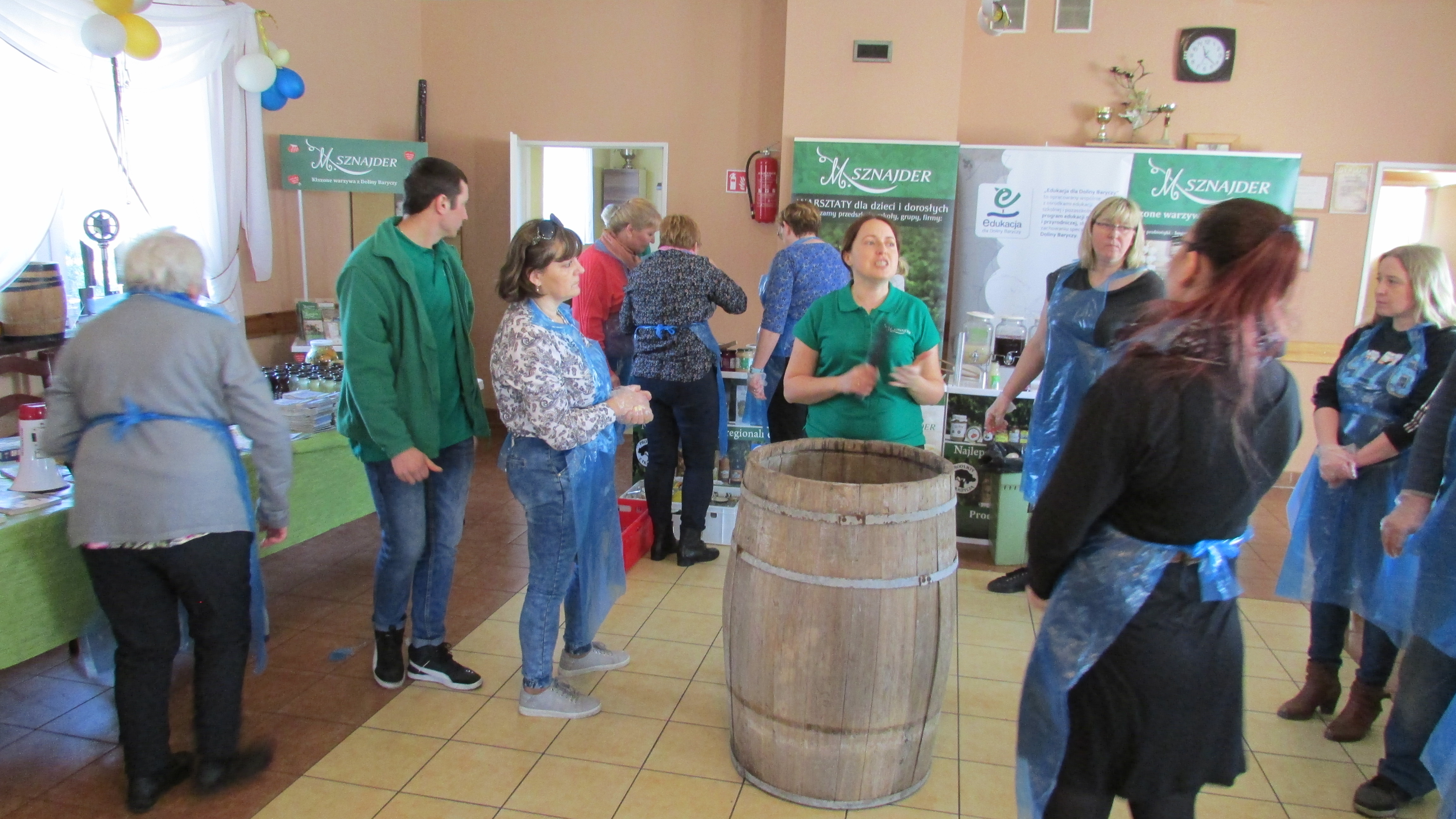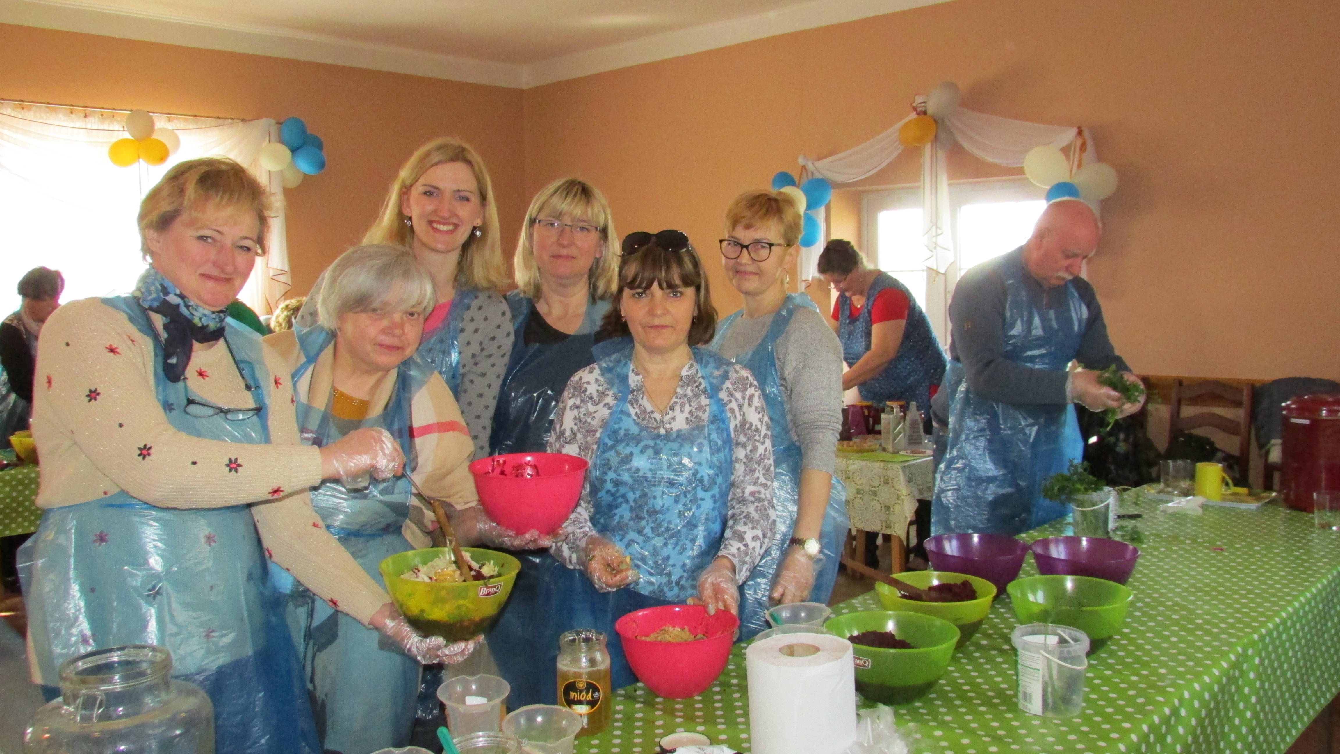 W dniu 23 marca 2019 Koło Gospodyń Wiejskich w Trzeku wraz z przyjaciółmi wyruszyło do Doliny Baryczy – obszar położony na pograniczu Dolnego Śląska i Wielkopolski. Znajduje się tam największy kompleks stawów rybnych w Europie i największy w Polsce ornitologiczny rezerwat. W wiejskiej świetlicy w Karnicach odbywały się zajęcia kulinarne, które prowadziła Pani Emilia z Gospodarstwa Rolnego Michała Sznajdera. Obecnie już trzecie pokolenie w rodzinie sieje, sadzi, a później zbiera i kisi kapustę oraz ogórki. Podczas warsztatów poznawaliśmy tajniki kiszenia warzyw z buraczków, marchewki i pietruszki oraz jak przygotowywać pyszne surówki z warzyw świeżych i kiszonych. W recepturze kiszenia nic się nie zmieniło od wielu lat. Jest tak prosta, jak była, bez nowoczesnych chemicznych dodatków, bez konserwantów, przyspieszaczy fermentacji, czy wybielaczy. Powstały pyszne i autorskie dania, które zainspirowały wiele gospodyń wiejskich.